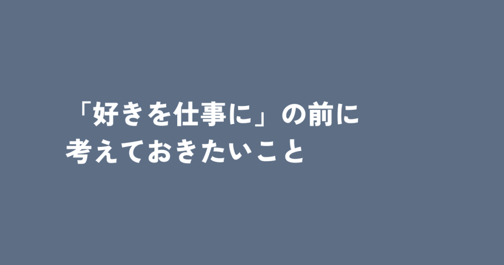 「好きを仕事に」の前に、考えておきたいこと