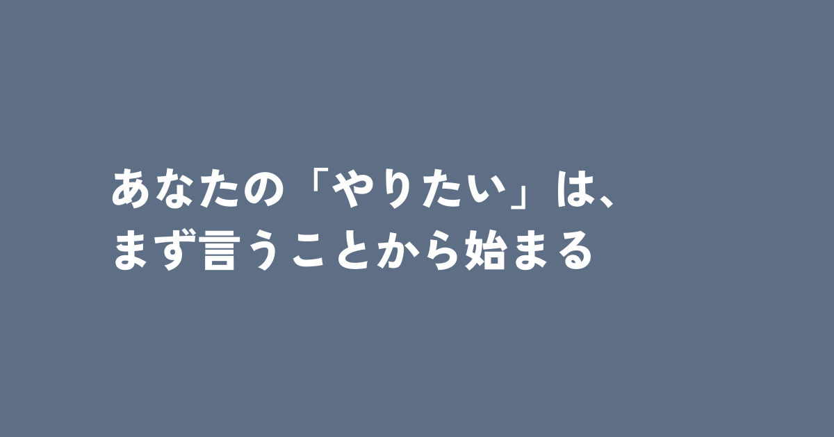 もしも何かやりたいことがあるのなら、まずは「言う」ことから始めてほしいのです。