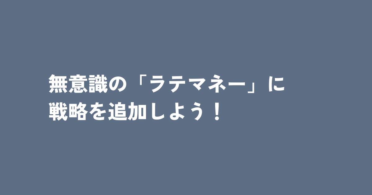 ラテマネーを無駄だと思う人は、早合点かもしれません。
