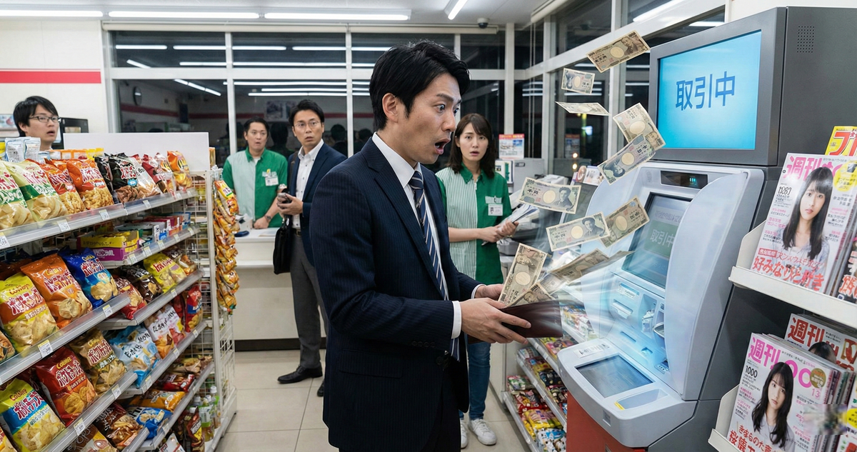 「なぜ、コンビニATMを使う羽目になっているか?」については、こちらの記事を読んでください。