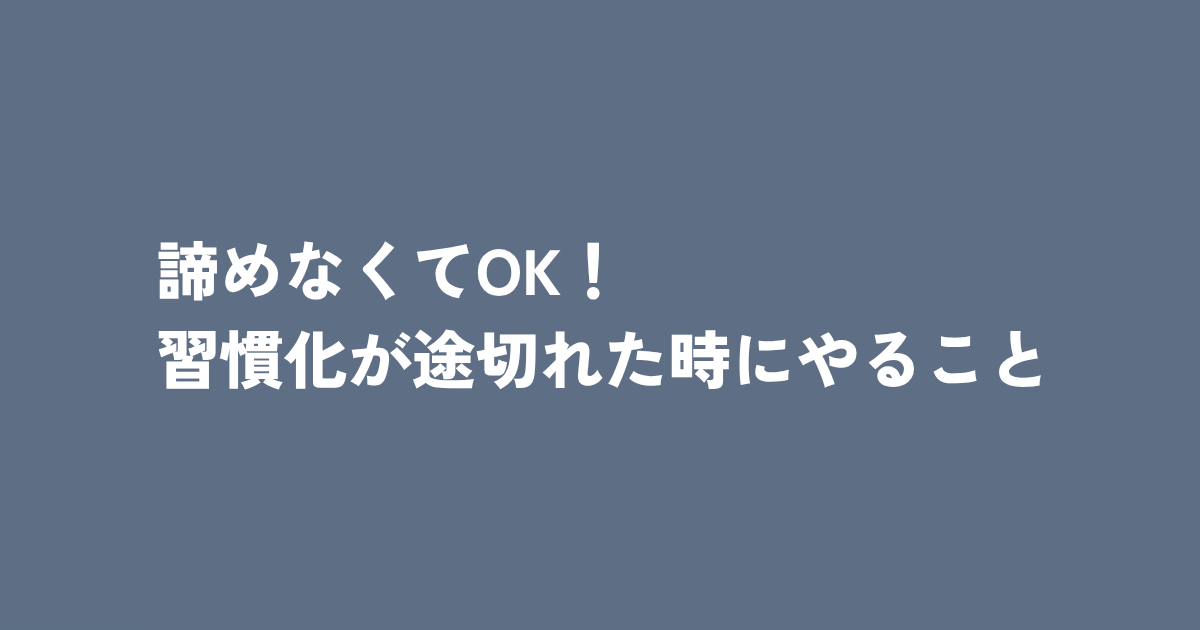 習慣化が中断した時、最も良くないのがそのまま諦めること。