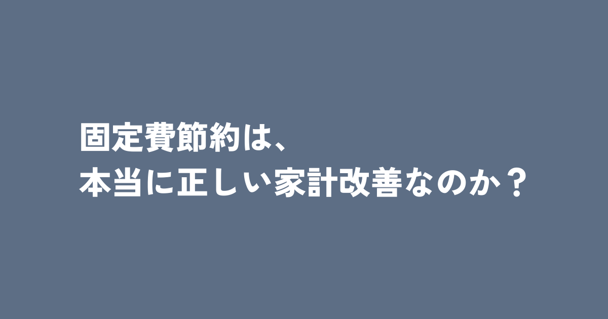 固定費節約は、本当に正しい家計改善なのか?
